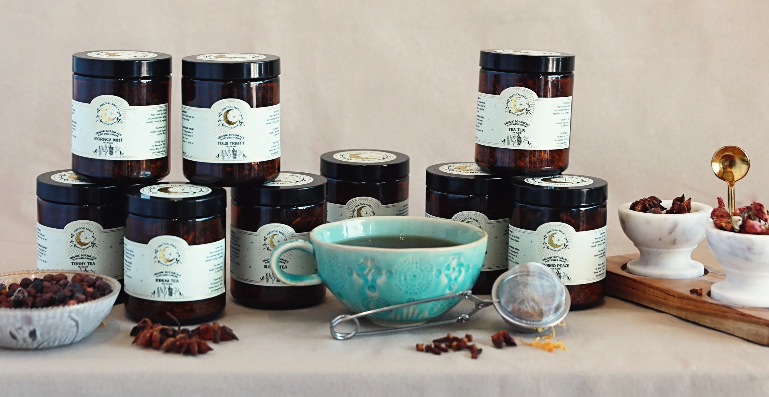 Practical Magic Apothecary provides online herbal products such as botanical cocktails, teas, tinctures, candles, community, and other herbal wisdom for the everyday witch.